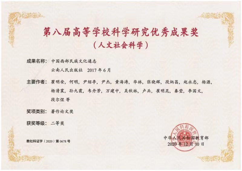 學校十二次黨代會以來,在“十三五”期間,云南大學民族學與社會學學院的科研工作以云南大學“雙一流”建設為契機,以學科建設為動力,以鑄牢中華民族共同體意識和構建人類命運共同體“兩個共同體”為導向,聚焦關鍵問題,形成了以下一批標志性研究成果:以中國特色民族學知識體系重構為中心,在鑄牢中華民族共同體意識、西南民族交流交往交融史、人類命運共同體視閾下的東南亞人類學研究、“五位一體”視閾下的民族地區經濟社會與生態建設等方面,出版和發表了《西南民族通史》《國家圖書館藏西南少數民族語言文獻匯編》《中國西部民族文化通志》《全球化及其人類學論題》《人類學的東南亞研究》等論著;建成5個特色數據庫;獲國家社科基金重大項目8項;獲教育部高校科學研究優秀成果獎一等獎2項、二等獎2項、三等獎1項,為全國民族學科獲獎數最多的高校;獲準設立國家教材重點研究基地云南大學民族教育教材與管理政策研究中心,是目前全國民族學教材類唯一一家獲批單位;獲準設立國家四部委鑄牢中華民族共同體意識重點研究基地。