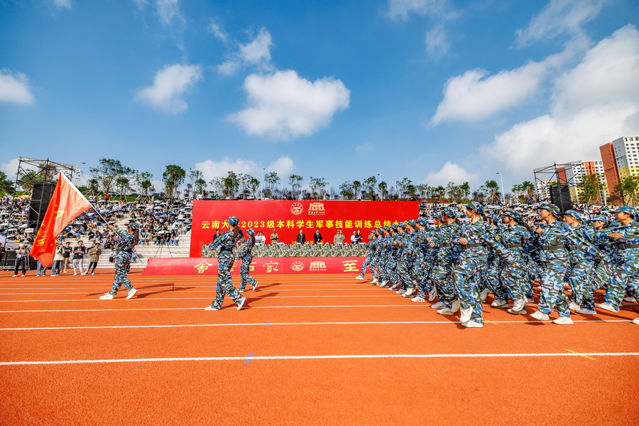 2023年9月16日,云南大學2023級本科學生軍事技能訓練總結大會在呈貢校區(qū)文體中心田徑場舉行。