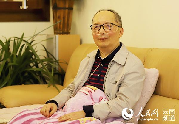 位于昆明北市區(qū)某小區(qū)的家里,陳景戴著黑框眼鏡,神情和藹,從外貌上看,他和其他老人相比并沒有特別之處。唯一不同的是,他離不開氧氣瓶。即便如此,陳景總是拒絕拄拐和攙扶,話里帶著灑脫。